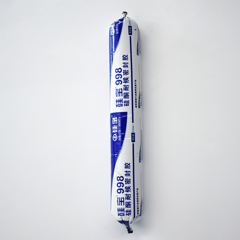 硅宝 998 硅酮耐候密封胶   产品特性: 单组分,中性固化; 良好的弹性、伸长率; 优异的耐气候老化性能及 耐高低温性能; 对大部分建筑材料具有 优良的粘结性,一般不需要使用底漆。   主要用途: 玻璃幕墙工程的耐候密封; 铝塑板、陶土板幕墙耐候密封; 混凝土、塑料和金属等的接缝密封。   使用限制: 不能作为结构密封胶使用; 不宜用于所有会渗出油脂、增塑剂或溶剂的材料,如浸油木材的表面; 不宜用于密不通风的场所; 不宜用于结霜或潮湿的表面; 不宜用于连续浸水或终年潮湿的地方; 不宜用于铜、铅、镀锌金属表面。   执行标准: GB/...