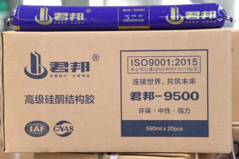 君邦-9500 高级硅酮结构胶是一种单组份,中性固化胶。君邦-9500 产品对大部分的建筑材料,不需用底涂,都能产生优越的粘结性。